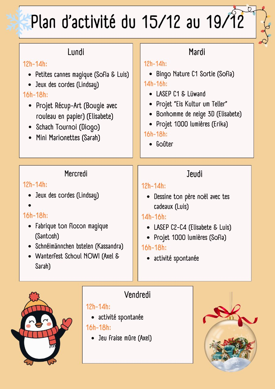 Plan d’activité du 15/12 au 19/12
