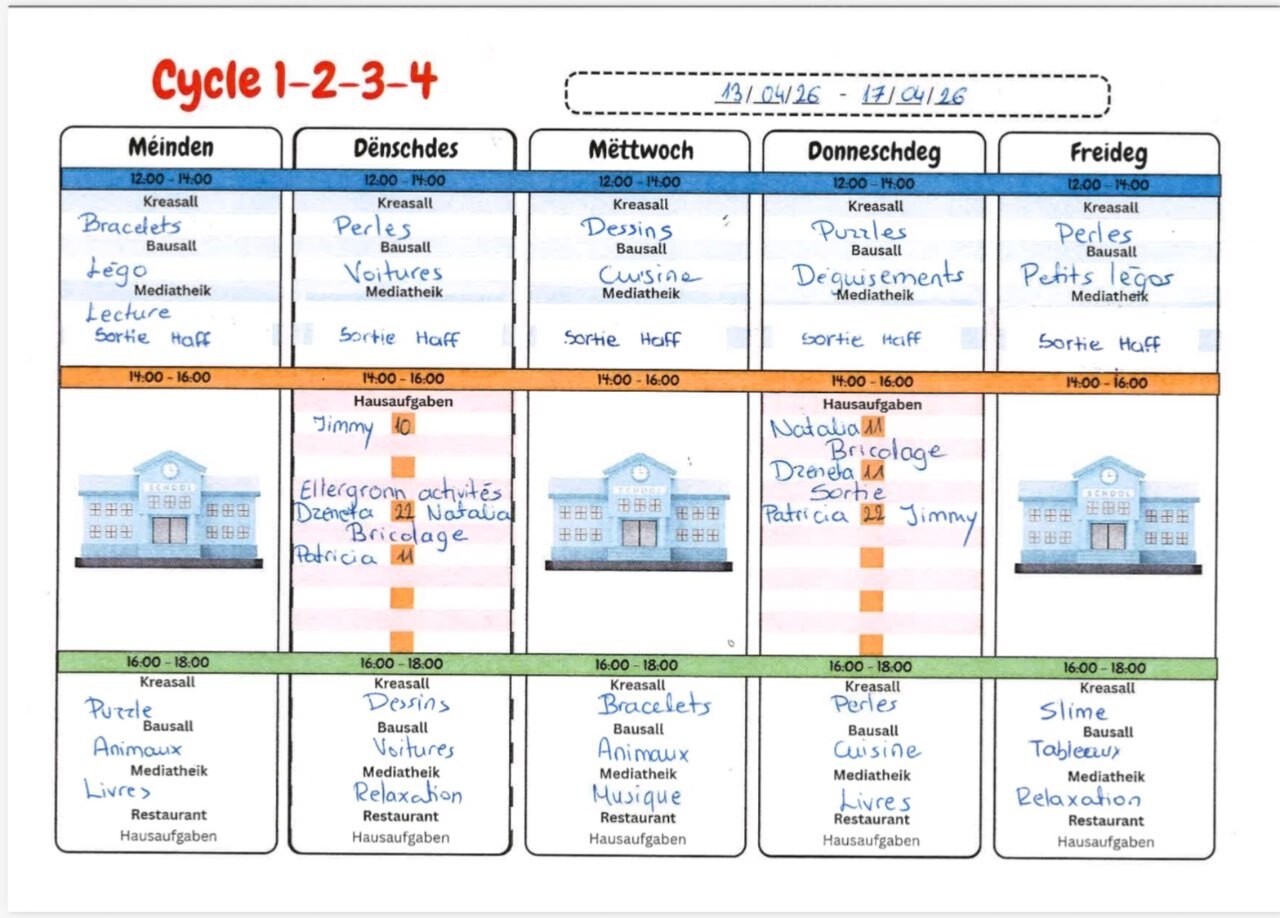 Aktiviteitenplang Woch vum 6 Abrell - 10 Abrel