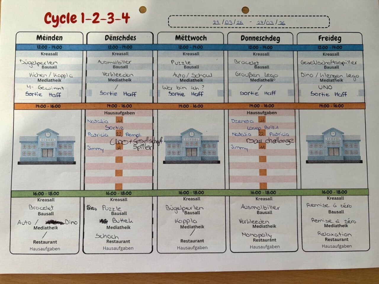 Op der Dagesuerdnung stoung d’Evaluatioun vun de Menüer vun dëser Woch souwéi verschidde Punkten, déi d’Kanner am SEA gären géife verbesseren.