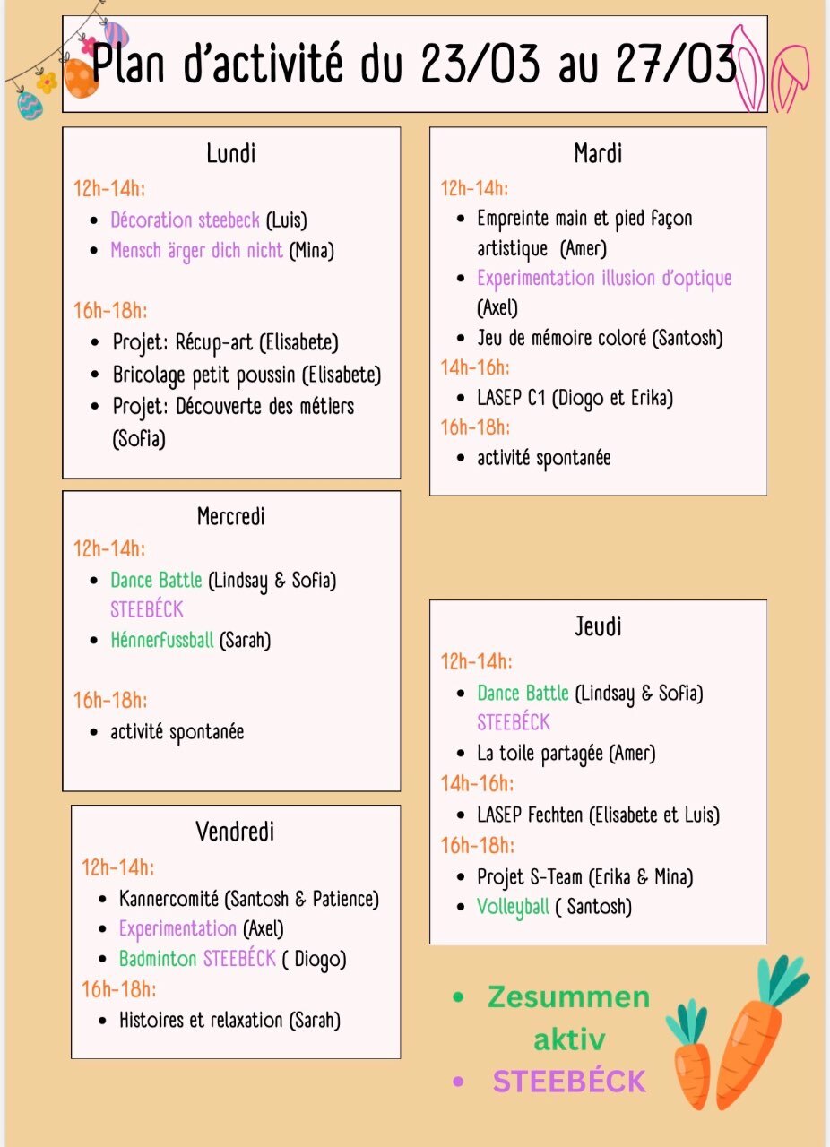 Plan d'activité semaine 23/03/2026 - 27/03/2026