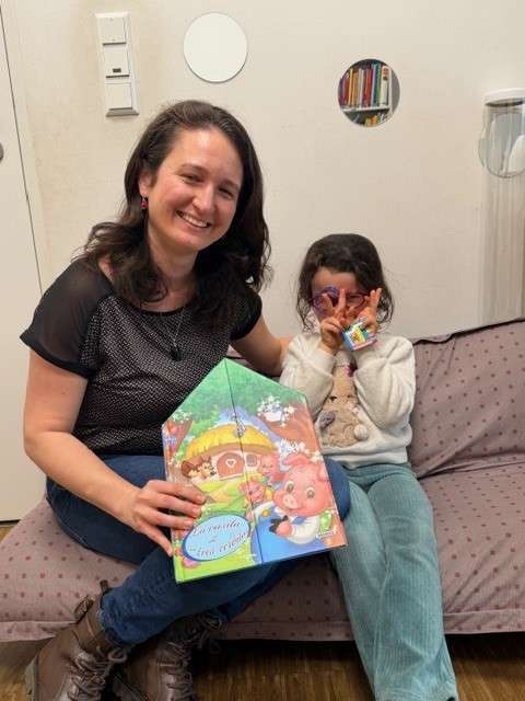 Mier haaten haut dem Samantha seng Mamm op Besuch fier eis eng spuenesch Geschicht fierzeliesen. Sie haat D'Geschicht heescht La Casita de los tres cerditos. Mier hunmat hier och iwwer Cuba geschwaat, daat ass Land wou sie hierkommen. Sie huet eis och erzielt dass an Cuba ganz vill Mangoen wuessen an dass Avocadoen immens deck sin. Mier soen op desem Wee Merci fier dei super flott Liesung