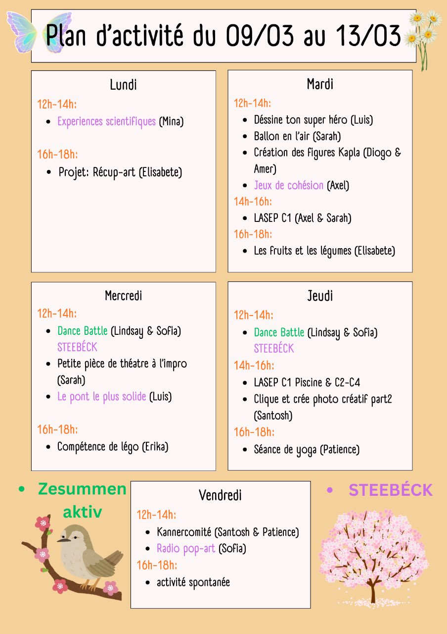 Plan d'activités semaine due 02/03/2026 - 06/03/2026