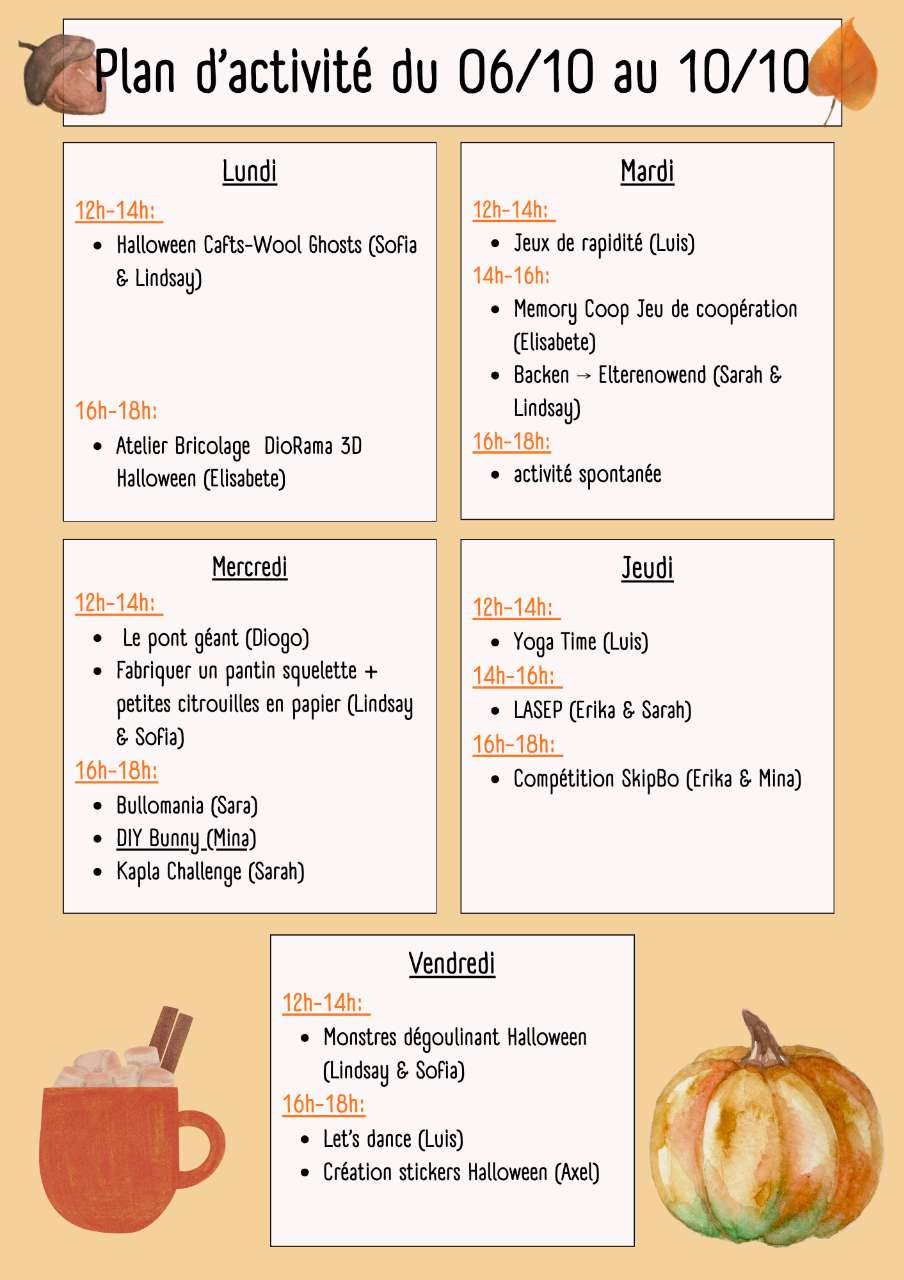 Plan d'activités de la semaine du 06.10.-10.10.2025
