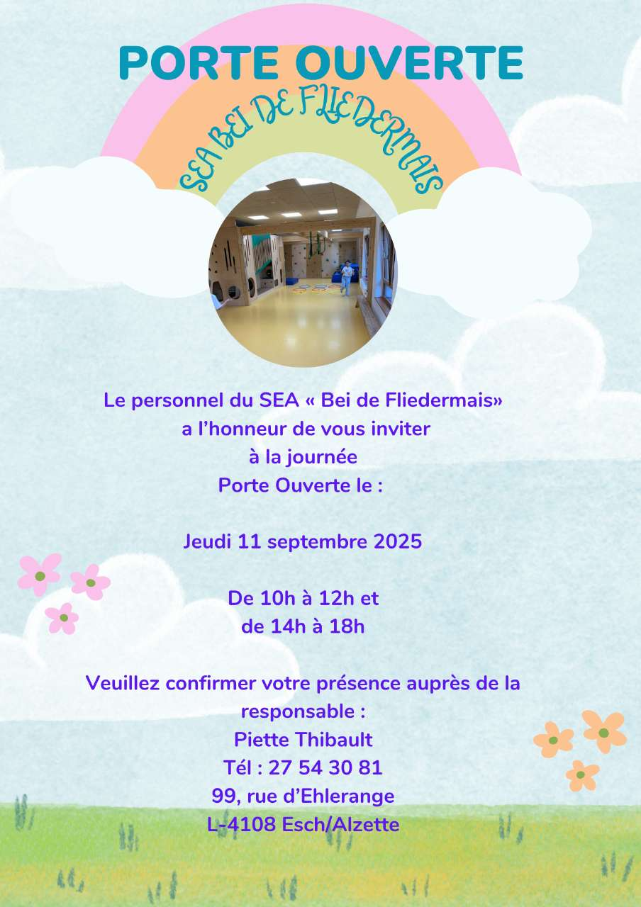 Dir sidd häerzlech invitéiert op eis Porte Ouverte dësen Donneschden, den 11.09.