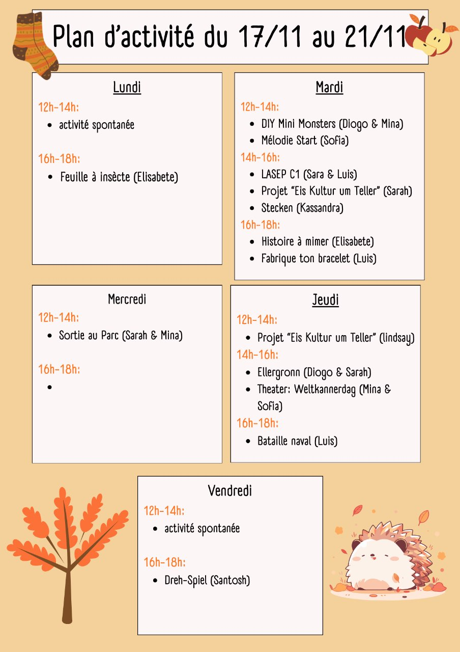 PLAN D'ACTIVITÉS DE LA SEMAINE DU 17.11.2025 - 21.11.2025
