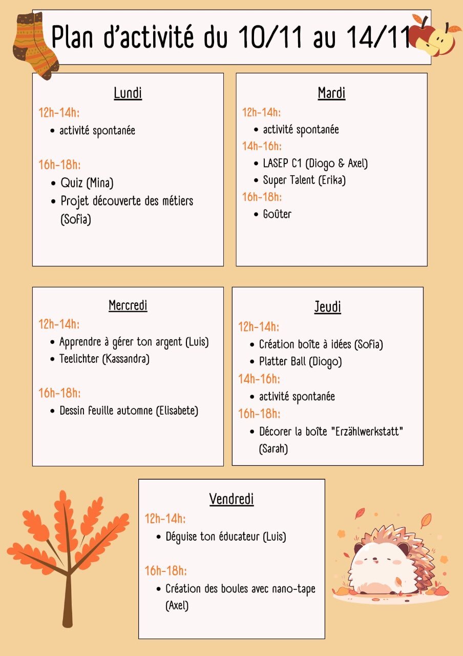 PLAN D'ACTIVITÉS DE LA SEMAINE DU 11.11.2025 - 14.11.2025