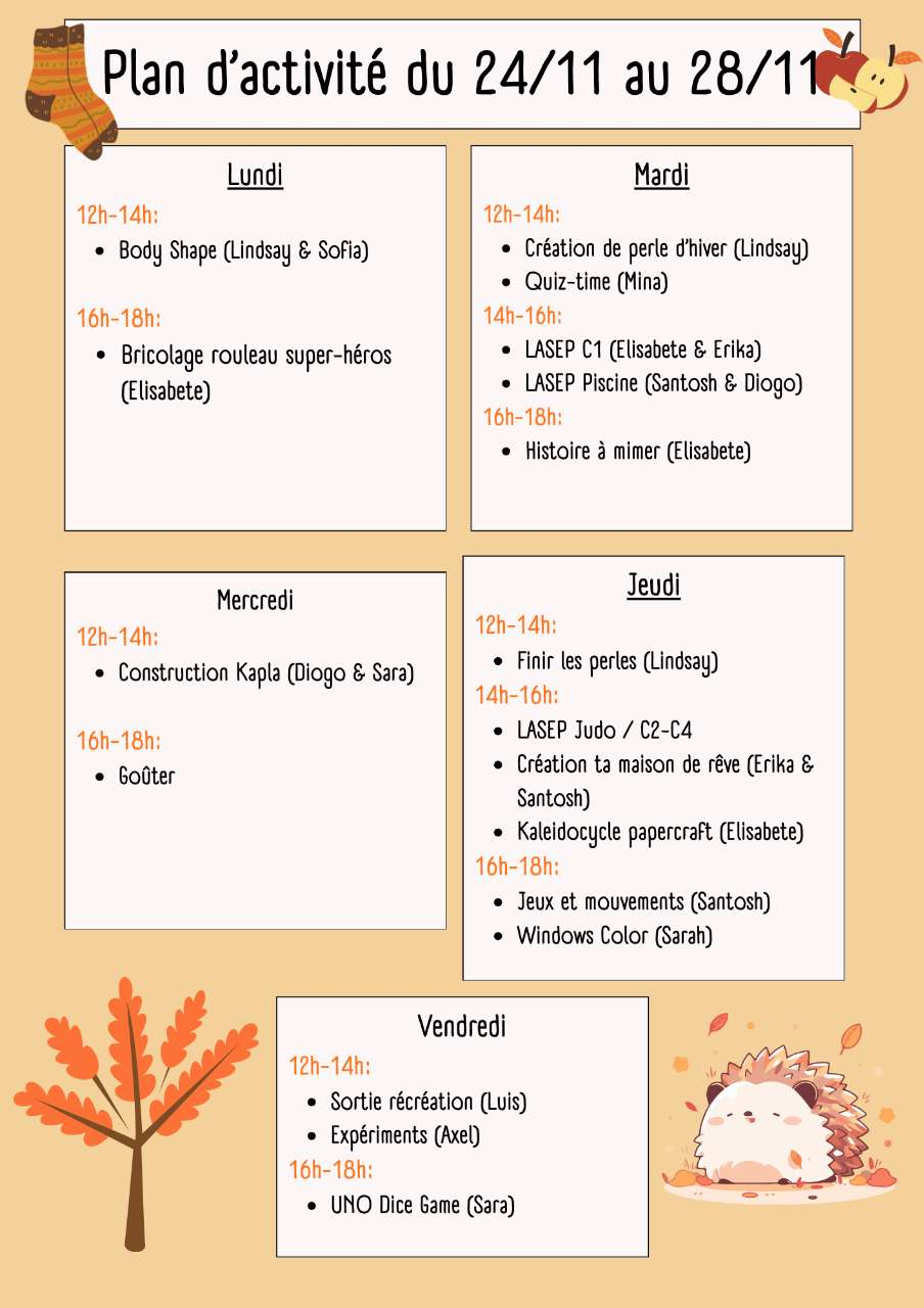 PLAN D'ACTIVITÉS DE LA SEMAINE DU 24.11.2025 - 28.11.2025