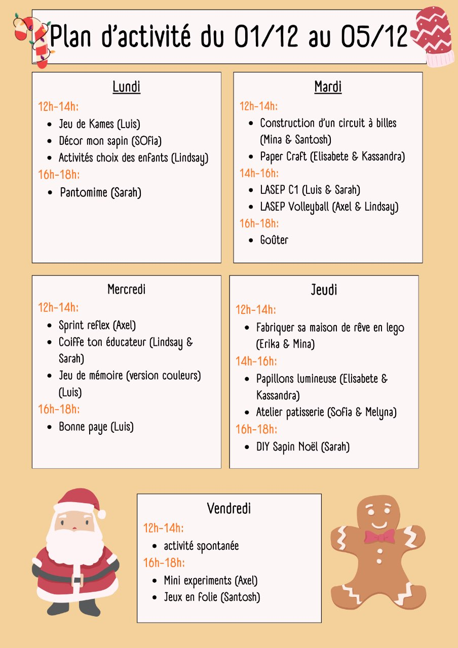 PLAN D'ACTIVITÉS DE LA SEMAINE DU 01.12.2025 - 05.12.2025