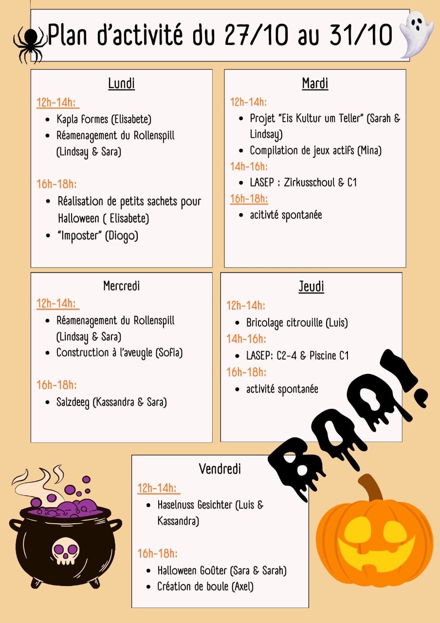 Plan d'activité:Vacance Toussaint 03/11 - 07/11/2025