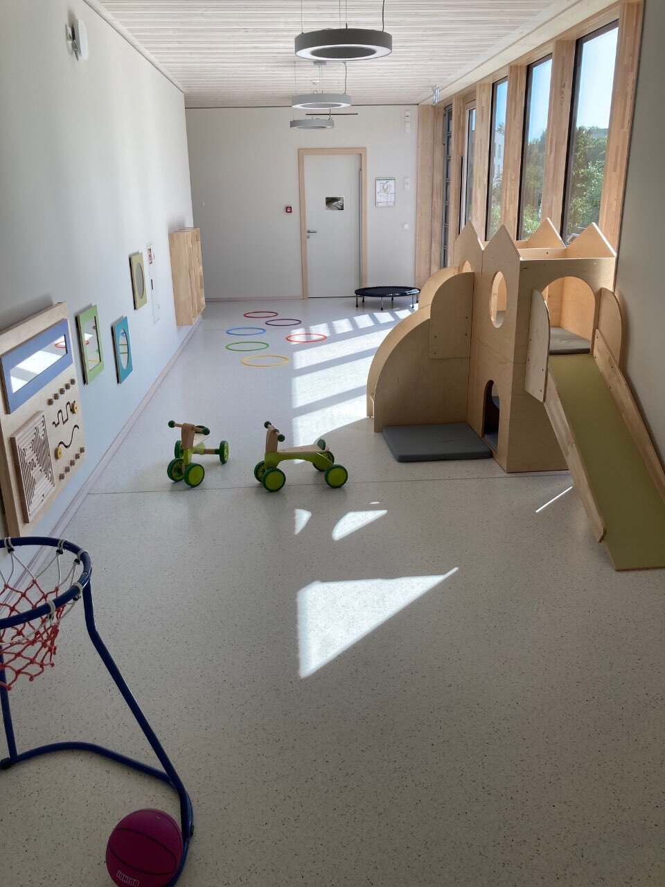 Un espace de motricité très apprécié des enfants, conçu pour favoriser le mouvement, l’équilibre et l’autonomie. Parcours, trampolines, trottinettes, vélos, coins cachettes et grands miroirs permettent aux enfants de se dépenser tout en prenant conscience de leur corps en action, même les jours de pluie. C’est un lieu vivant et ludique, où ils explorent librement leur motricité et leur énergie.