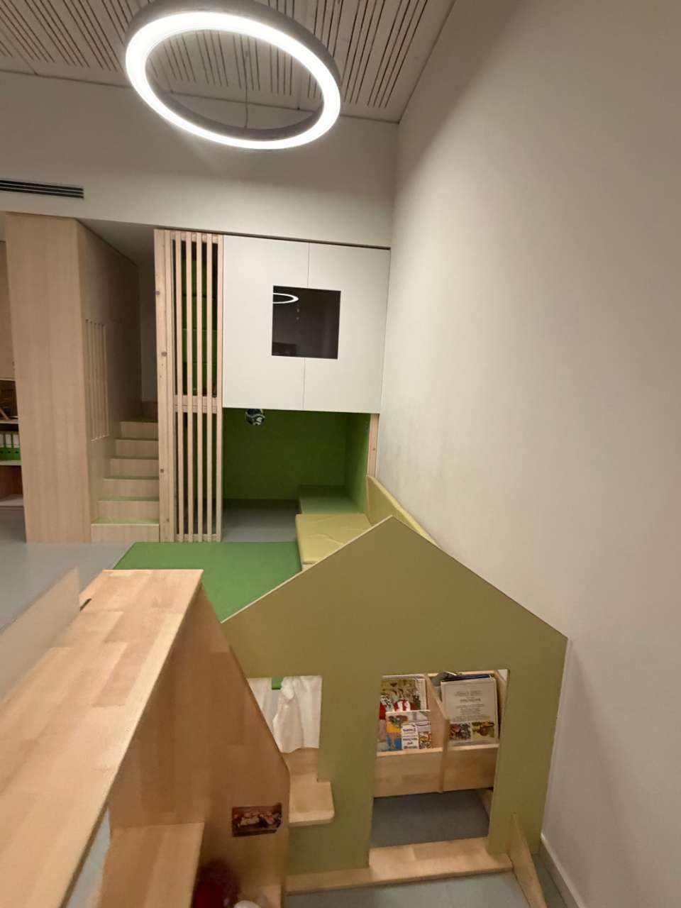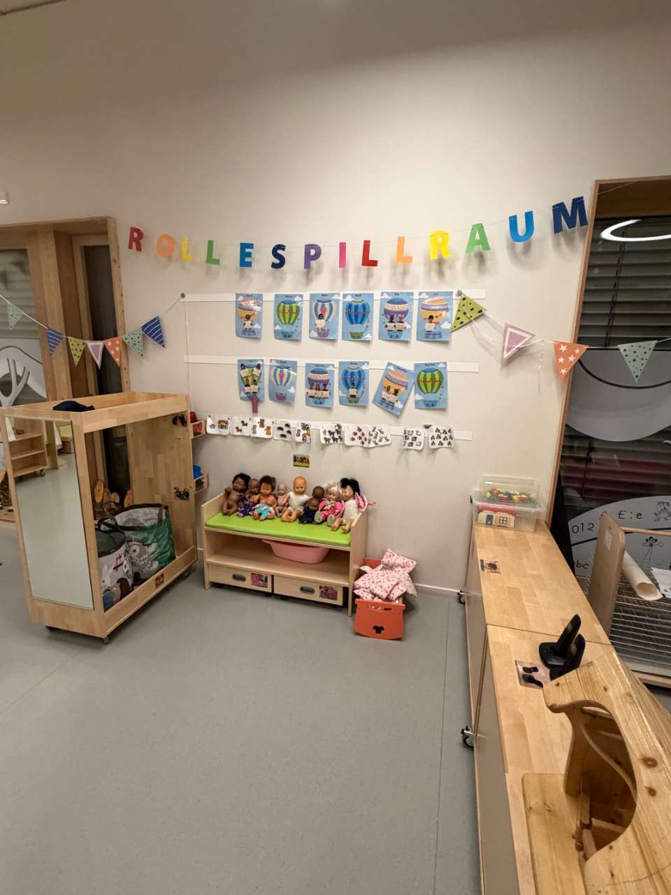 Cependant, lors du rangement, tout est remis à sa place d'origine afin de clarifier les choses. De plus, des jouets en bois et des matériaux réels, tels que de vrais téléphones, sont proposés afin de vivre des situations quotidiennes et des changements de rôle de manière réaliste tout en agissant de manière écologique.
