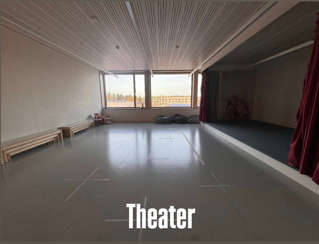 La salle de théâtre est un espace créatif où les enfants peuvent s’ exprimer à travers le jeu, les histoires et mises en scène. À travers des activités de théâtre, ils développent leur imagination, leur confiance en eux, leur expression corporelle et leur capacité à coopérer avec les autres.